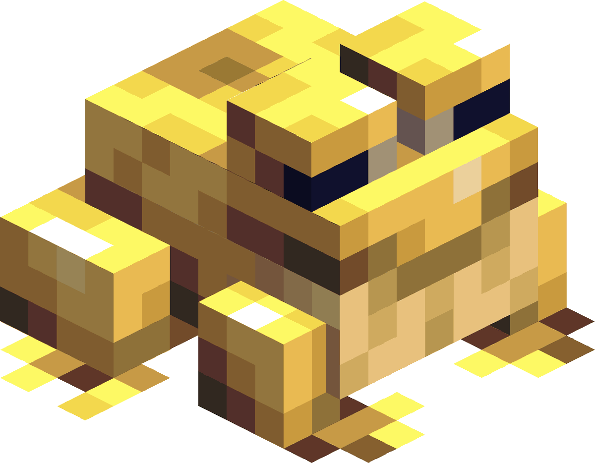 A frog is a passive mob found in swamps. Frogs eat small slimes and magma cubes. A frog can produce one of three kinds of froglights from eating magma cubes, depending on the type of frog. More..